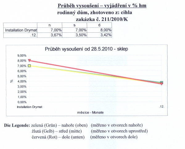 - Technologie: Provedení sanace vlhkého zdiva v úrovni podlah v přízemí historického domu. zamezení vzlínání vlhkosti do přízemního zdiva. Odvlhčení a snížení vlhkosti ve sklepě instalací bezdrátové elektroosmózy.