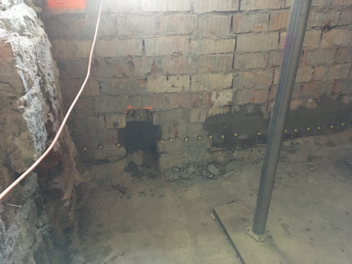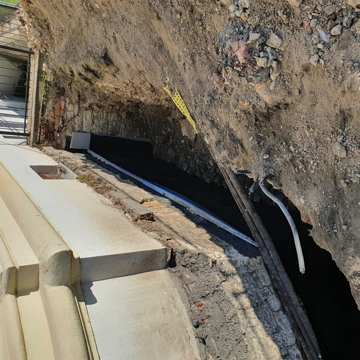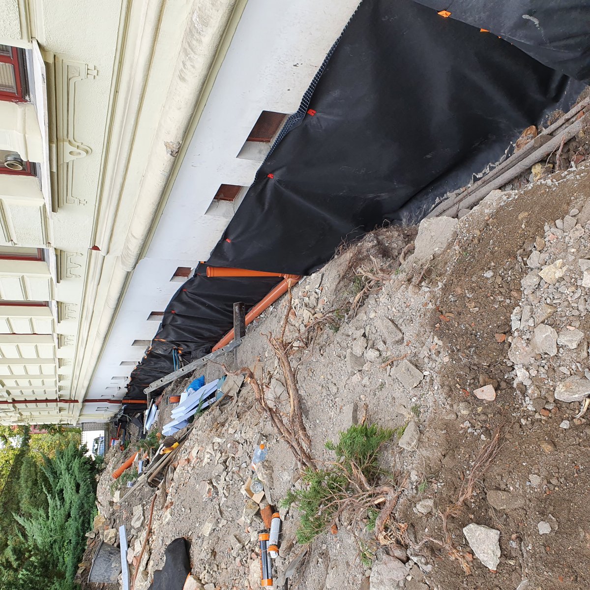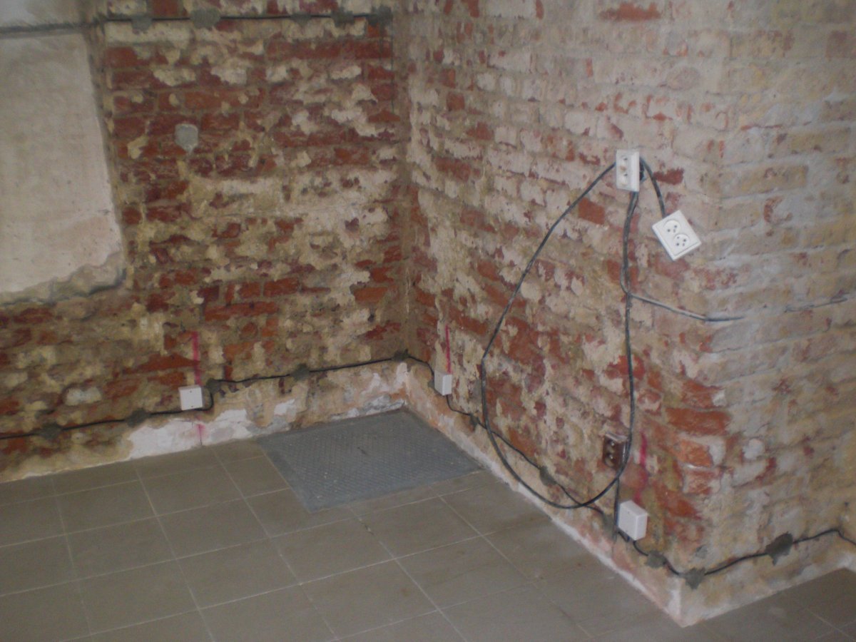 - Technologie: Aplikace metody aktivní drátové elektroosmózy pro sanaci spodní stavby historického objektu. Provedení kladných elektrod (anod) ve vlhkém zdivu a záporných elektrod (katod) do podzákladí objektu a následné propojení s řídící jednotkou.
