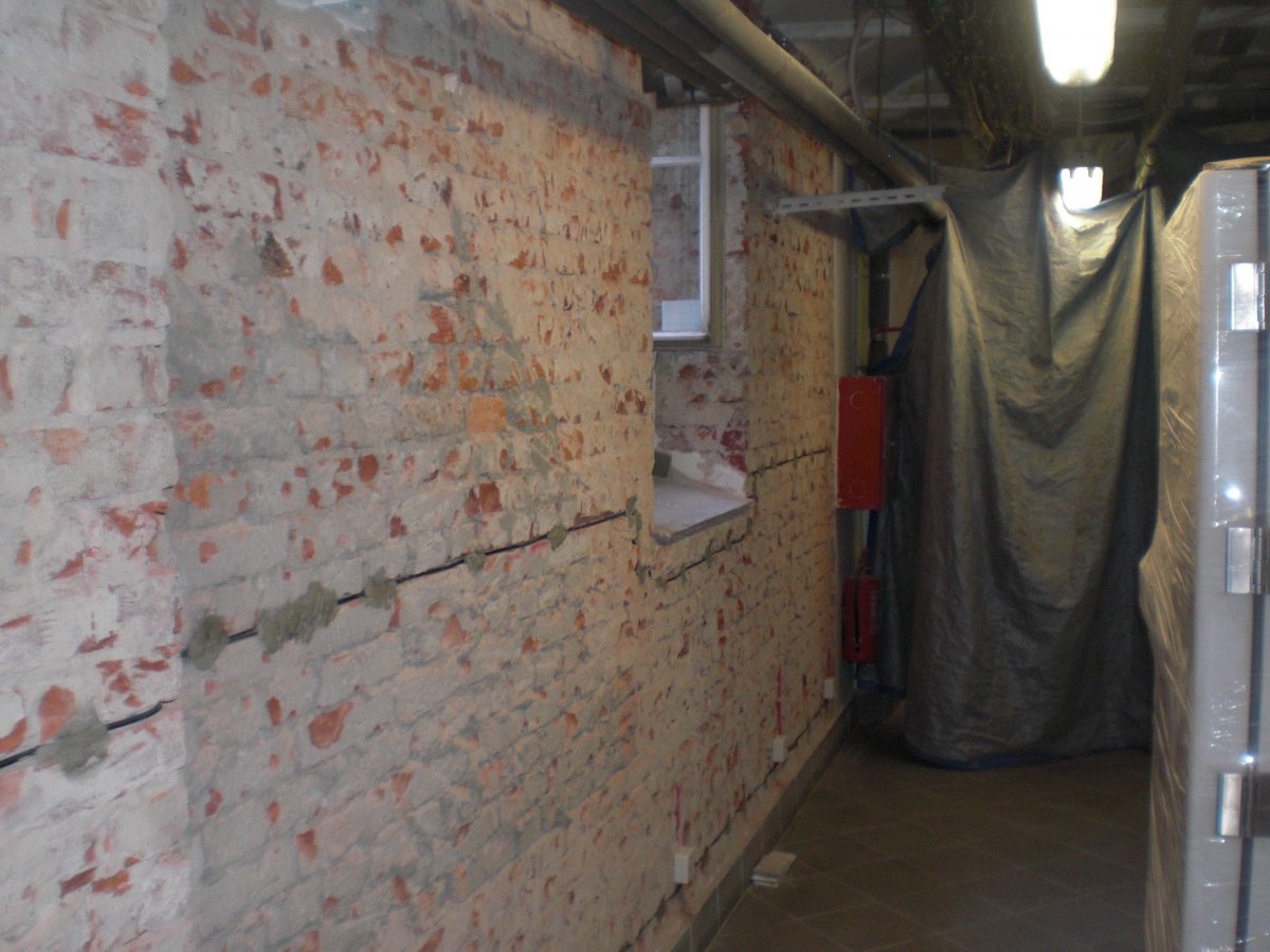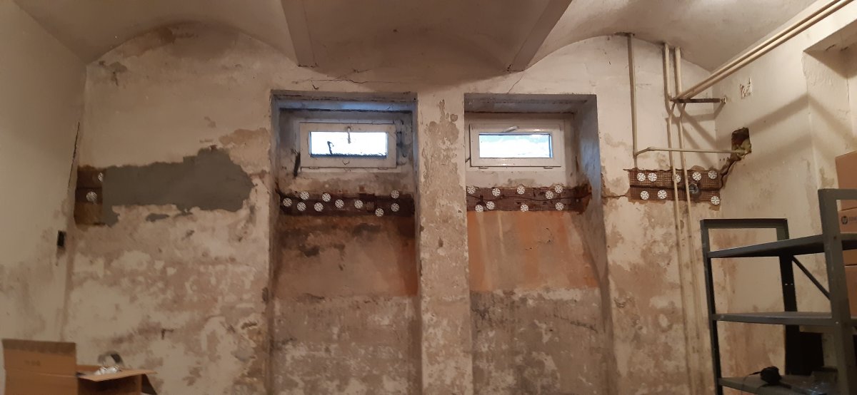 - Technologie: Dodatečná izolace zdiva metodou chemické injektáže. Byla zde provedena dvouřadá injektáž z důvodu nesourodého zdiva. Aplikace chemických clon zabrání pronikání vzlínající zemní vlhkosti z podzákladí objektu.