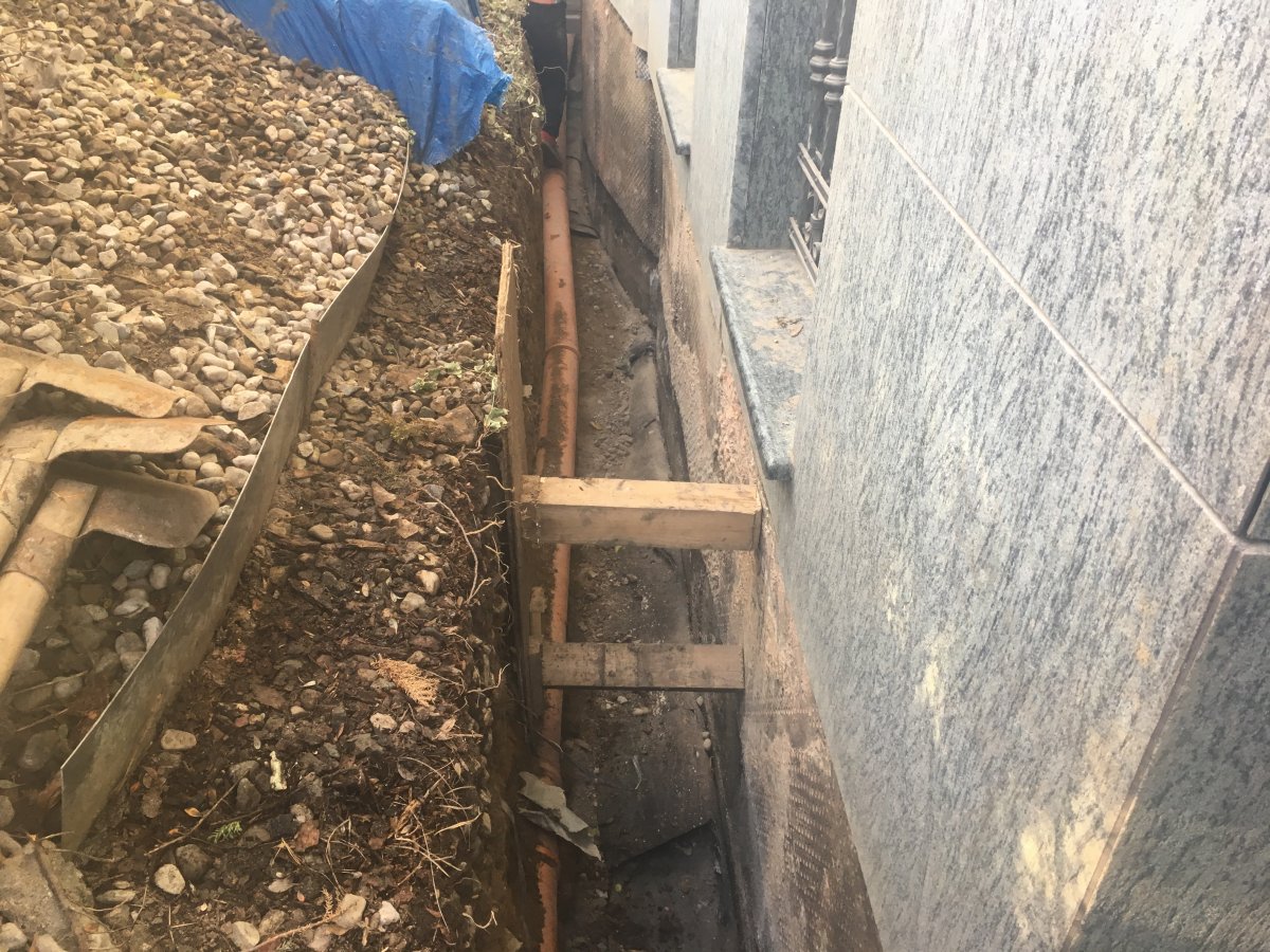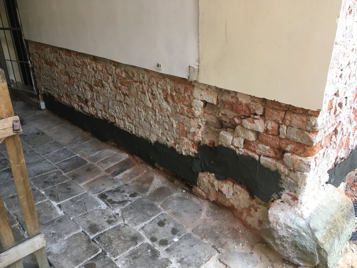 - Technologie: Dodatečná hydroizolace obvodového a vnitřního zdiva pomocí metody chemické injektáže silan-siloxanovou mikroemulzí. Provedení mírně tlakových injektáží pro zamezení kapilárního vzlínání vlhkosti.
