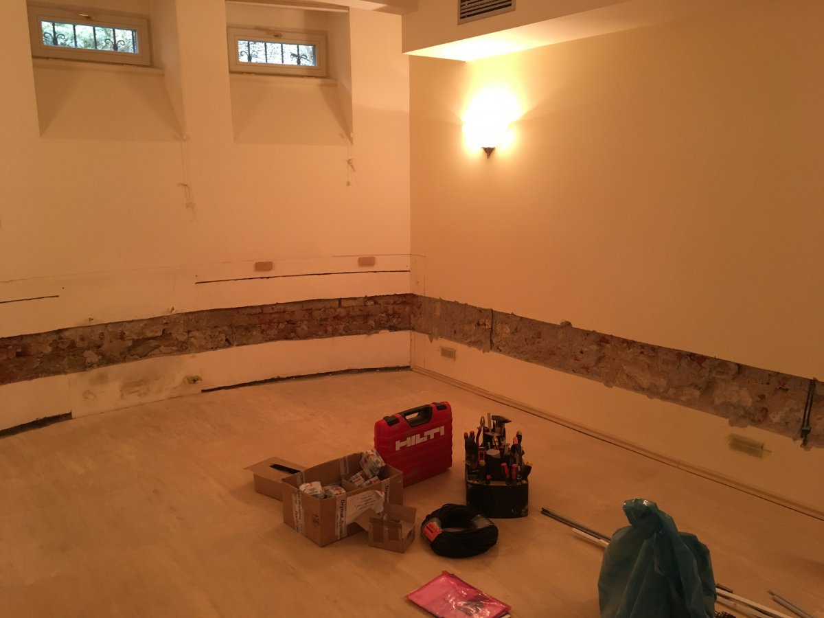 - Technologie: Provedení sanace zdiva metodami mírné drátové elektroosmózy a chemické injektáže. Dále aplikovány přes injektáže vnitřní hydroizolační stěrky a následně sanační omítky do výšky cca 1 metru od úrovně nových podlah.