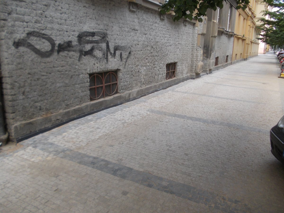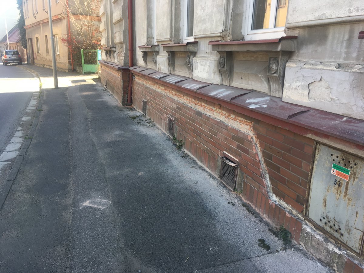 - Technologie: Provedení odvlhčení suterénu bytového domu kombinací technologií chemické injektáže, odkopu a nové svislé hydroizolace, drenáže. Povrchové úpravy provedeny speciálními sanačními omítkami do vlhkého prostředí.