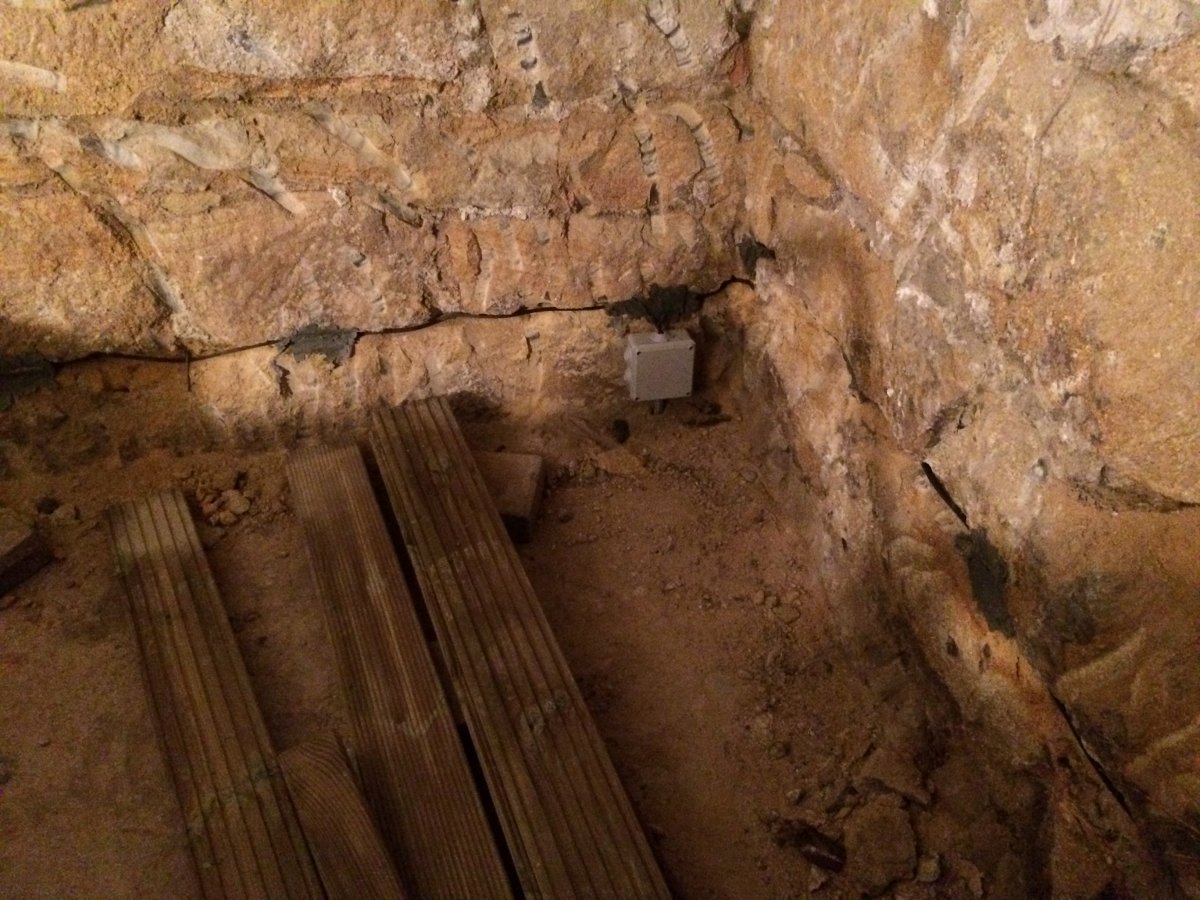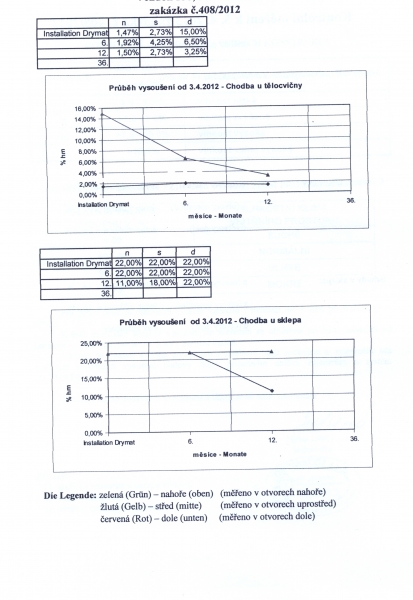 - Technologie: Instalace technologie bezdrátové elektroosmózy v objektu chalupy. Zdivo kamenné, nemožnost podřezání, provedeny dílčí rekonstrukce. Majitelé nechtěli stavební zásahy, proto zvolena tato metoda. Zdivo postupně vysychá a je možno aplikovat sanační omítku.