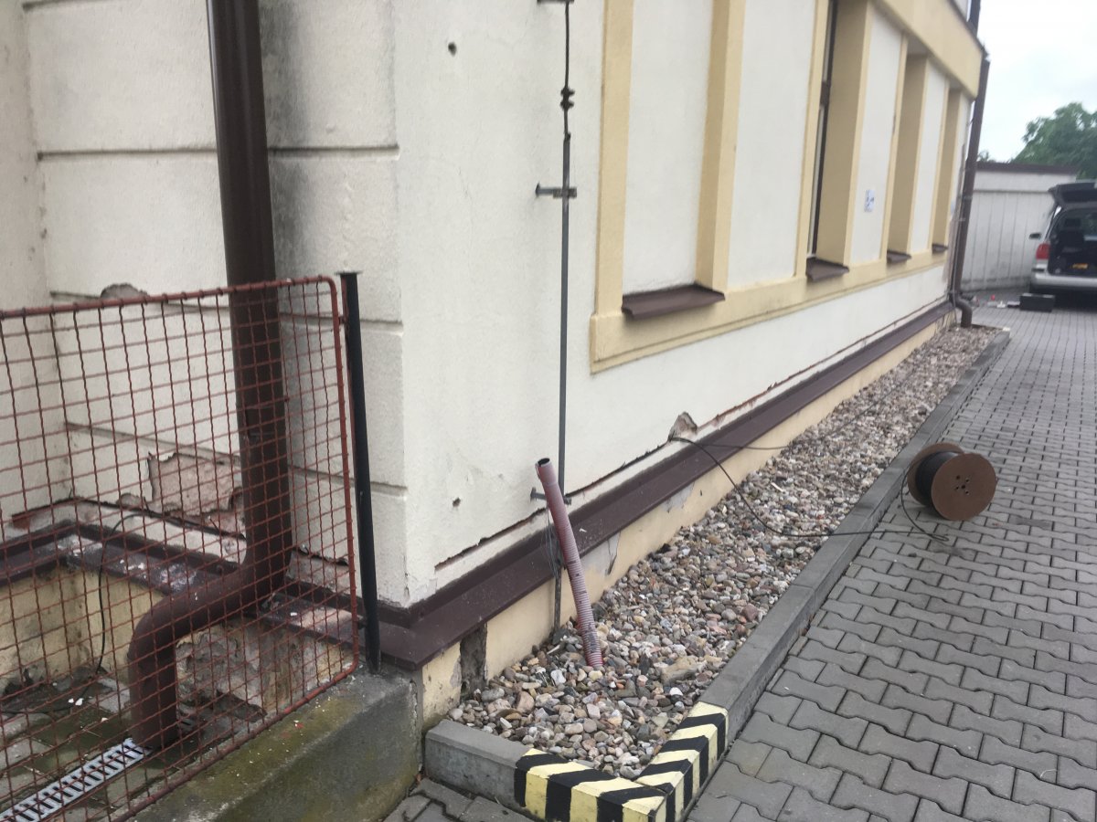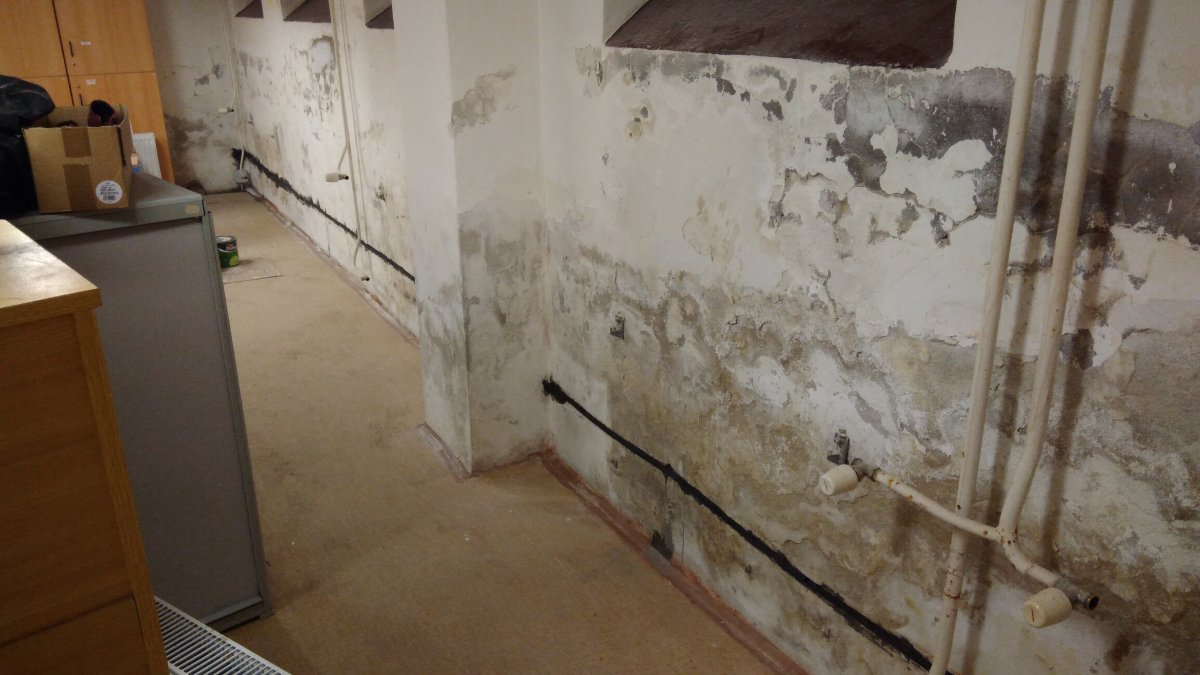 - Technologie: Instalace prvků systému aktivní drátové elektroosmózy do obvodového zdiva a do podzákladí suterénu. Vzniklé elektrické pole brání kapilárnímu vzlínání vody a částečně funguje jako svislá izolace. Dále bude instalován systém řízeného větrání pro odvod vlhk