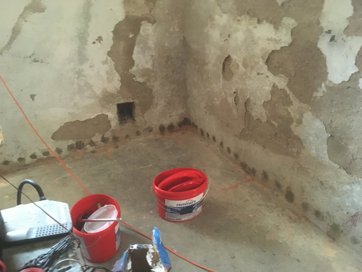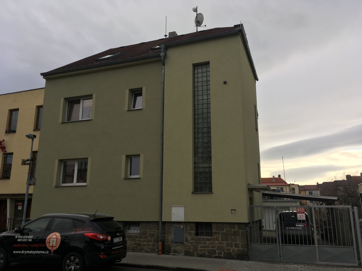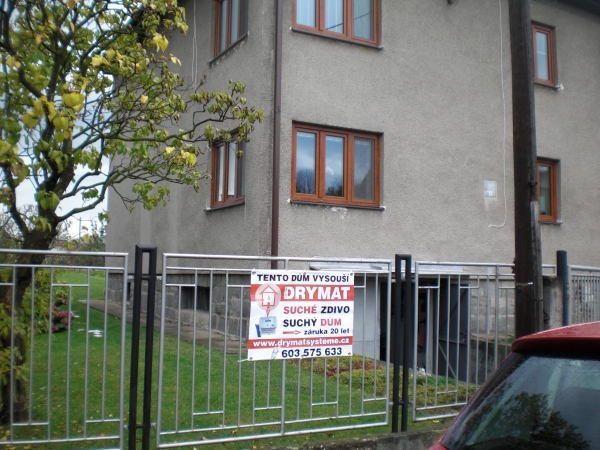 - Technologie: Dodatečná hydroizolace obvodového a vnitřního zdiva rodinného domu pomocí navrtání zdiva a provedení chemické injektážní clony v úrovni podlah přízemí. Injektáž byla provedena velmi rychle a provoz v domácnosti se jen minimálně omezil.