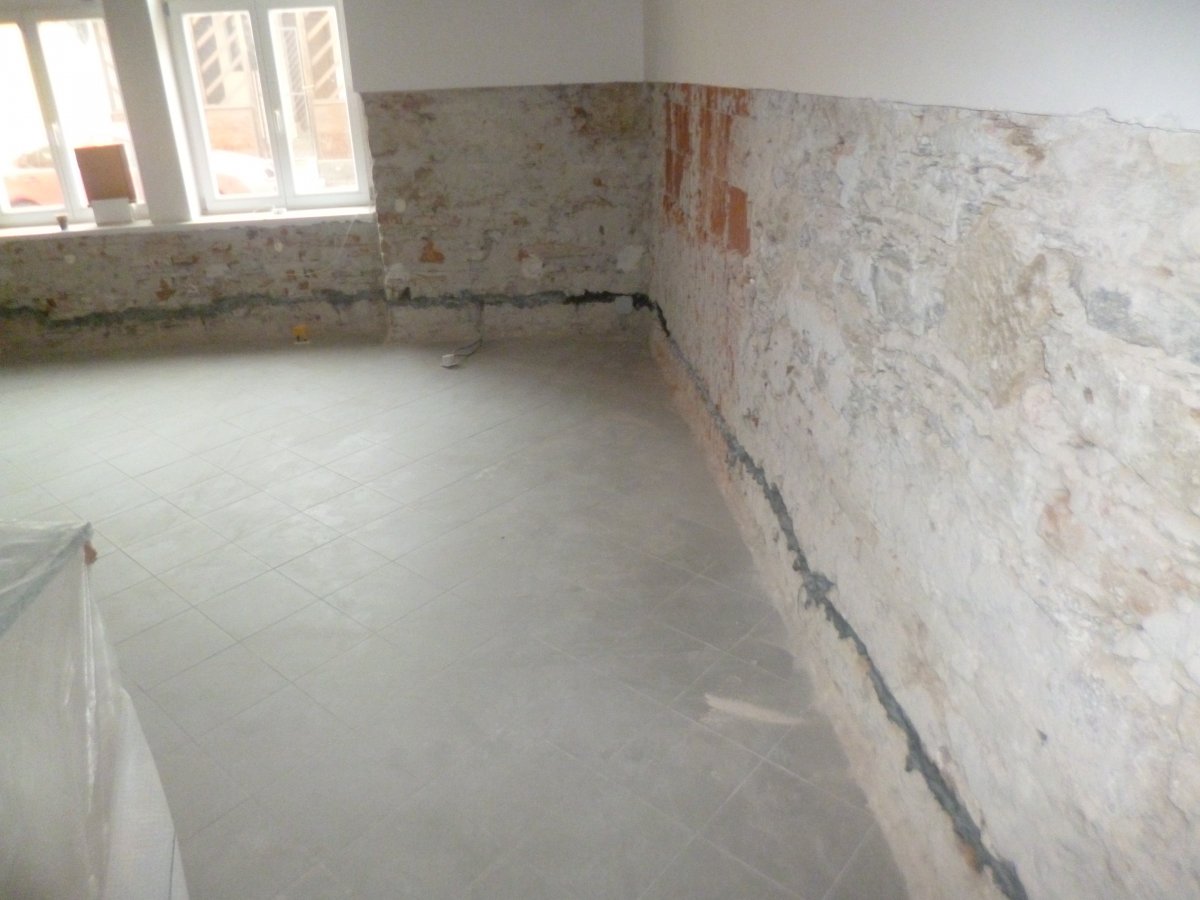 - Technologie: Provedení chemických injektážní clon proti pronikání kapilární vzlínající vlhkosti z podloží stavby. Injektáže provedeny z venkovní strany ve velmi rychlém časovém horizontu, bez náročných stavebních zásahů. Jednoduše a přesně.