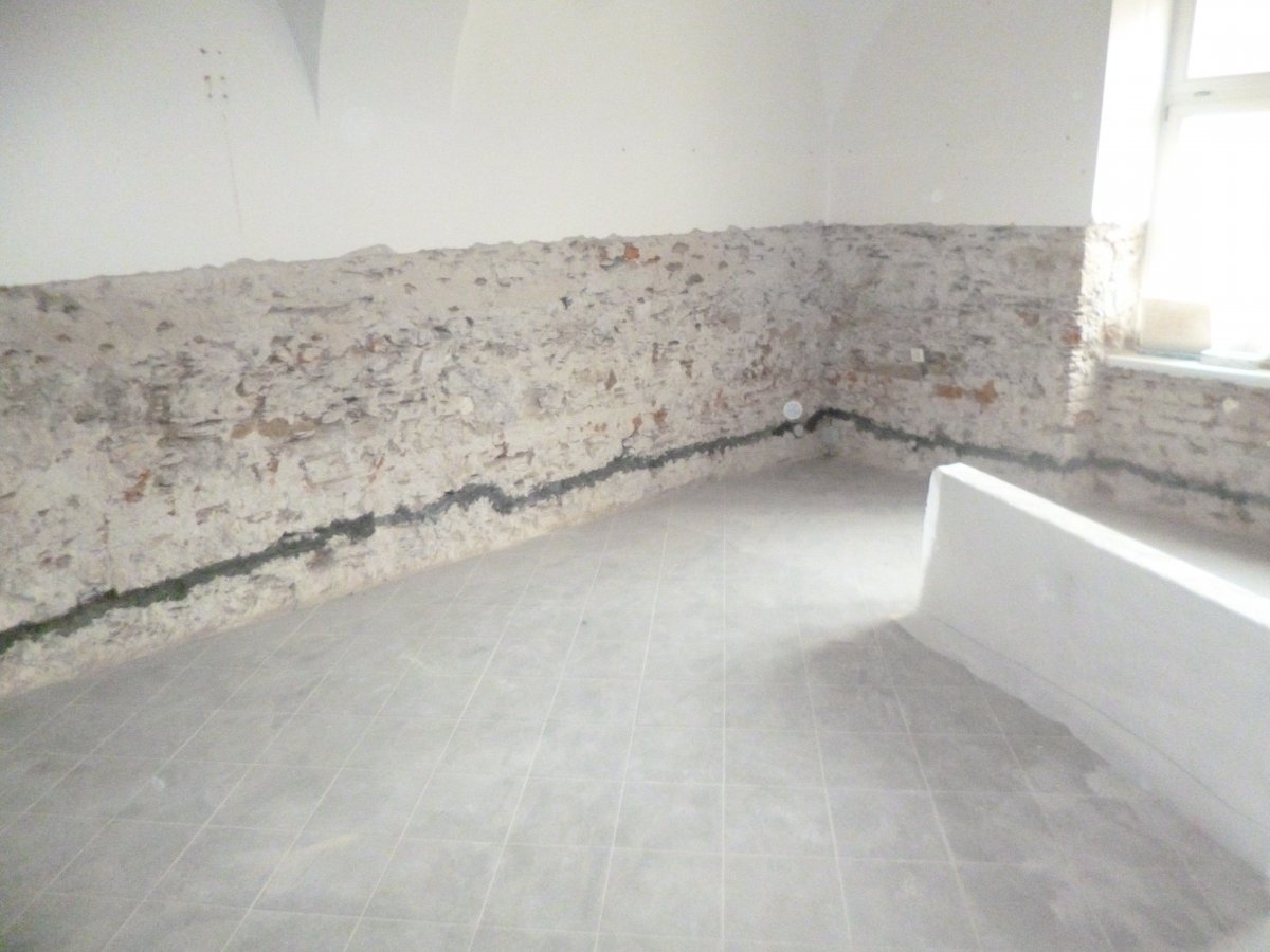 - Technologie: Podíleli jsme se na rozsáhlé rekonstrukci památkově chráněného objektu. Navržený systém opatření proti vlhkosti a vysokému zasolení zdiva je kombinací aktivní drátové osmózy, systému odvětrávaných podlah, sanačních omítek a hydroizolačních stěrek.