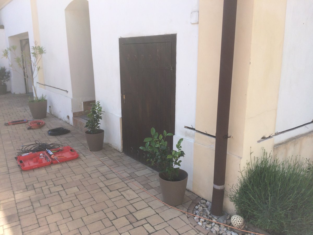 - Technologie: Instalace technologie bezdrátové elektroosmózy v suterénu obecního úřadu, kompletní oklepání vlhkostí zasažených omítek a instalace systému řízeného větrání pro účinnou výměnu vlhkého vzduchu v prostorách suterénu.