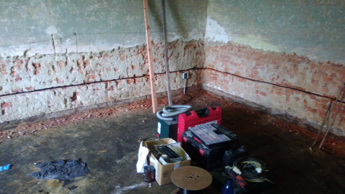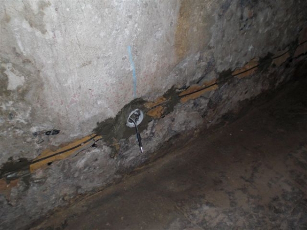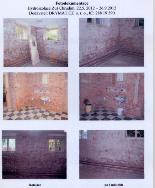 - Technologie: Provedení instalace prvků systému aktivní drátové elektroosmózy do vlhkého obvodového zdiva rodinného domu. Vše provedeno velmi rychle, bez narušení chodu domácnosti a po spuštění systém ihned odvlhčuje.