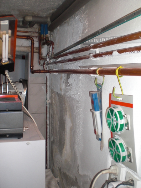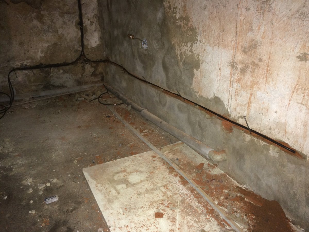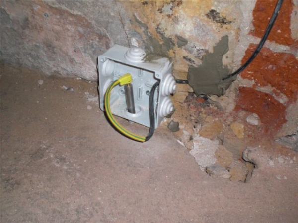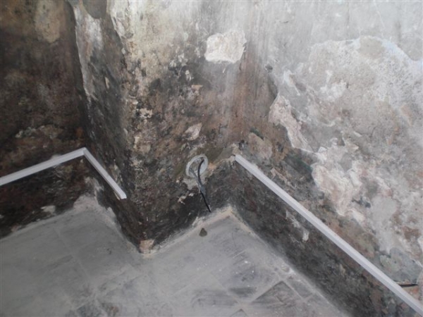 - Technologie: Pro zamezení pronikání vzlínající vlhkosti ze suterénu do prvního nadzemního podlaží byla instalována aktivní drátová elektroosmóza s pevně zabudovanými kladnými elektrodami ve vlhkém zdivu a zápornými v suterénu. Vlhkost se přesouvá k záporným elektrodám
