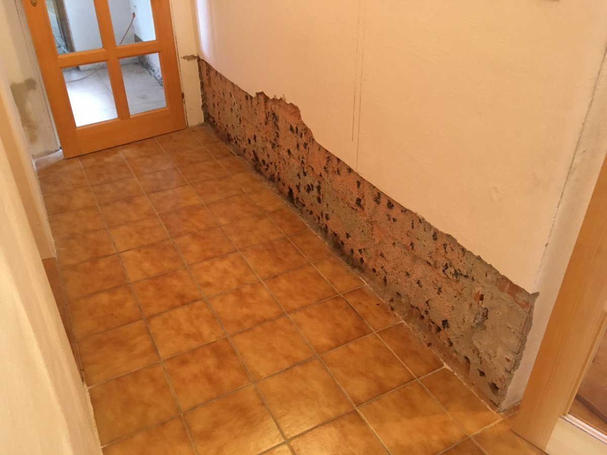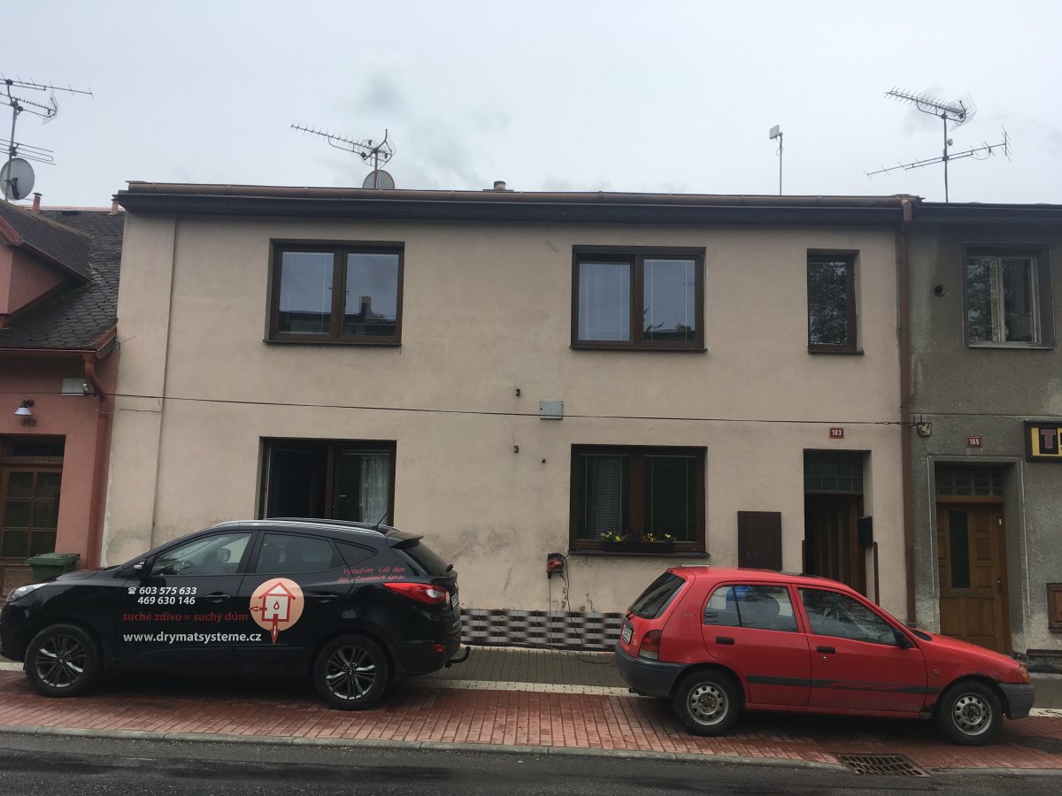 - Technologie: Provedení chemických injektáží na silně zavlhlém obvodovém zdivu a dále instalace řídídí jednotky bezdrátové elektroosmózy pro urychlení vysychání zdiva a plošnou izolaci objektu.