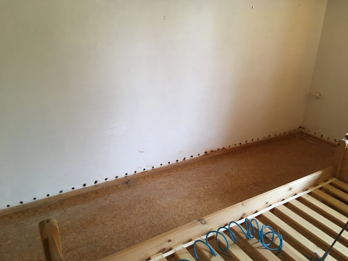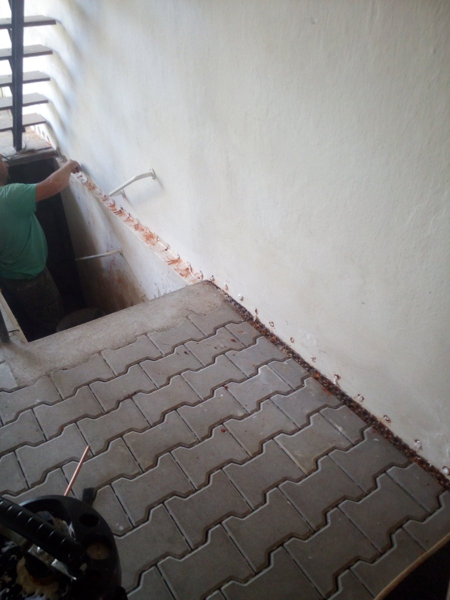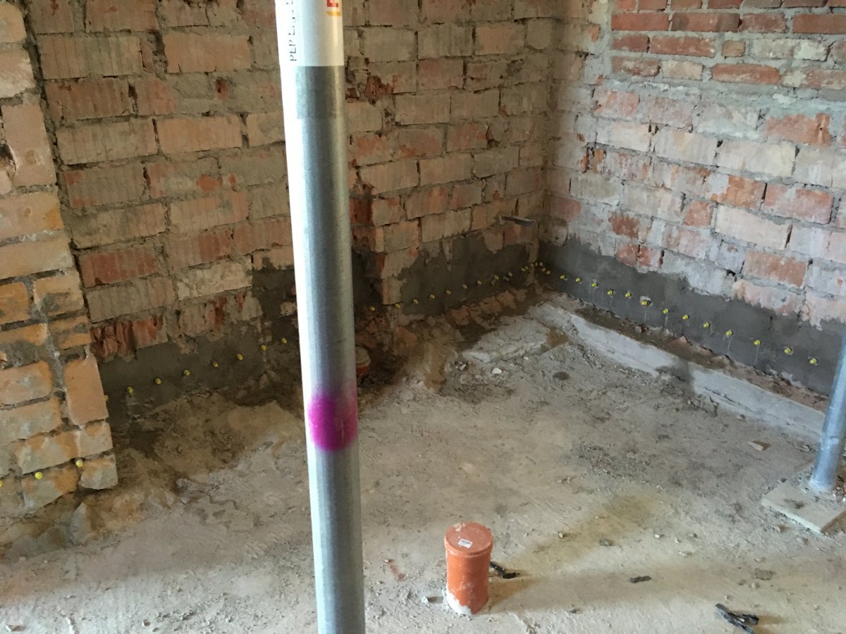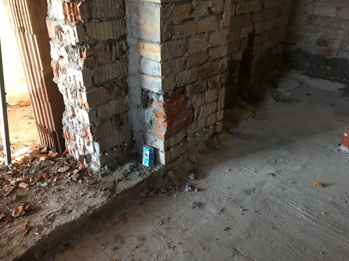 - Technologie: Pro odstranění vzlínající zemní vlhkosti a celkové pozvolné, ale trvalé odvlhčení spodní stavby rodinného domu byla zvolena technologie aktivní drátové elektroosmózy. Jednotlivé prvky osmózy instalovány do vlhkého zdiva a do podzákladí objektu.