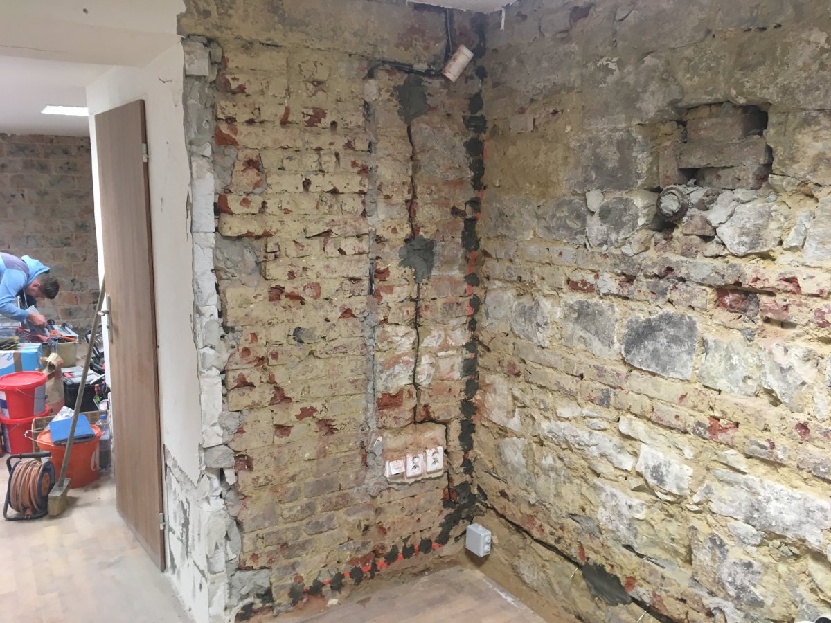 - Technologie: Pro komplexní sanaci vlhkého zdiva v suterénu bytového byl zvolen soubor technologií, které dohromady vytvářejí komplexní sanační systém. Suterénní prostory budou v budoucnu sloužit jako bytové jednotky a jako sklepní kóje pro obyvatele domu.