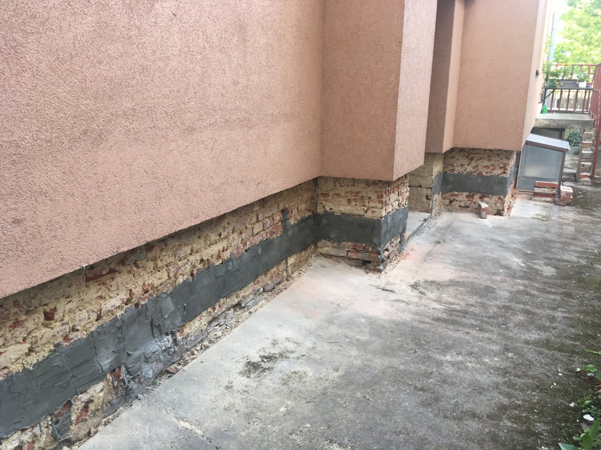 - Technologie: Pro šetrné a pozvolné snížení vlhkosti spodní stavby rodinného domu využita technologie bezdrátové elektroosmózy. Dům trpěl vzlínající zemní vlhkostí z podzákladí vlivem již nefunkčních vodorovných hydroizolací. Osmoza řeší vzlínající vlhkost.
