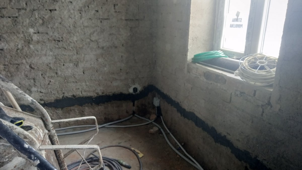 - Technologie: Pro zabránění vzlínající vlhkosti vzlínat do obvodového zdiva rodinného domu z podzákladí a vytvoření náhradní hydroizolace bez výrazného stavebního zásahu do zdiva byla zvolena šetrná a účinná technologie aktivní drátové elektroosmózy.