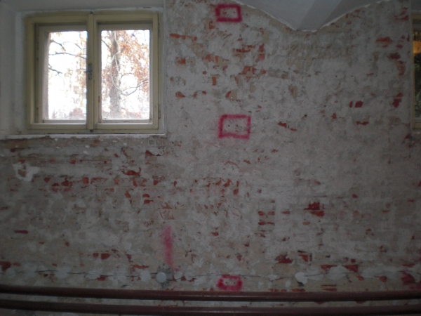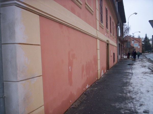 - Technologie: Sanace vlhkého zdiva na tomto objektu byla prováděna ve dvou etapách. První etapa spočívala v instalaci aktivní drátové elektroosmózy s elektrodami zabudovanými do vlhkého zdiva a do podzákladí. Dále provedeny sanační omítky. Prostory slouží jako ordinace