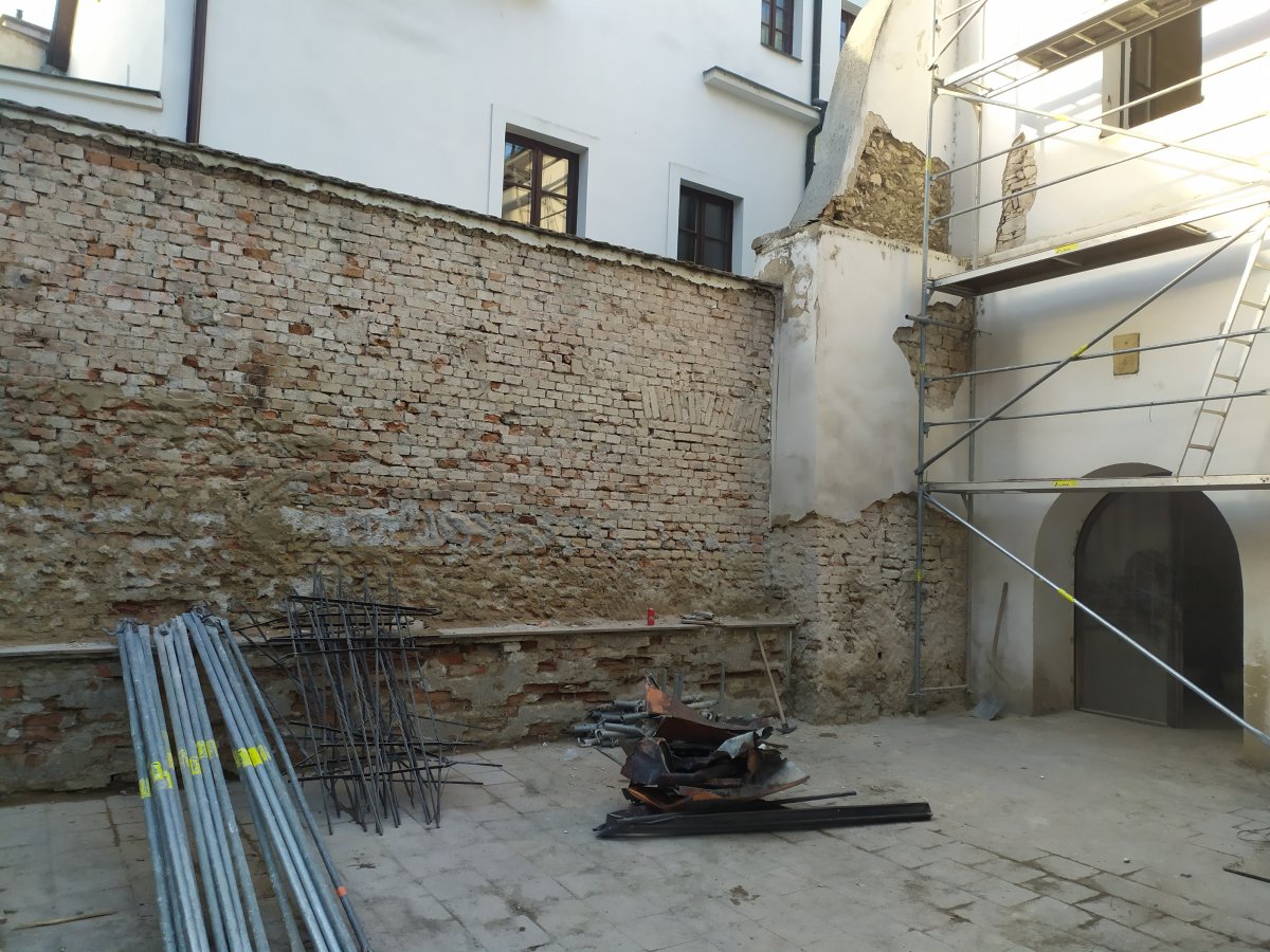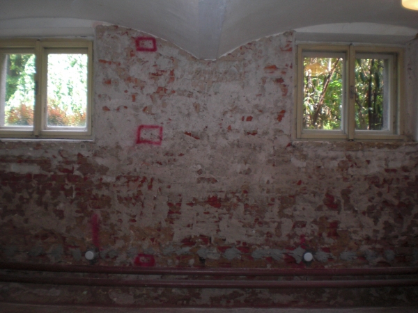 - Technologie: Pro odvlhčení zdiva historického objektu silně zasaženého vzlínající vlhkostí využita technologie aktivní drátové elektroosmózy s pevně zabudovanými elektrodami ve zdivu a v podzákladí. Velmi účinná a na stavební práce méně náročná metoda sanace zdiva.