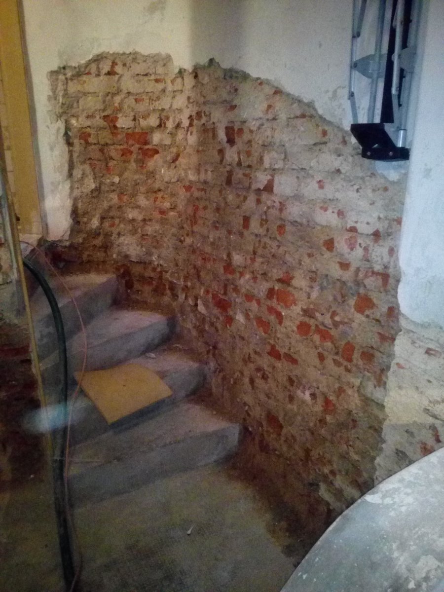 - Technologie: Provedení oklepání původních omítek, nové vnitřní svislé hydroizolace suterénu pomocí systému vnitřní minerální hydroizolační stěrky, dodatečné vodorovné hydroizolace chemickou injektáží silikonovým krémem, sanačních omítek, vzduchotechniky a statického z