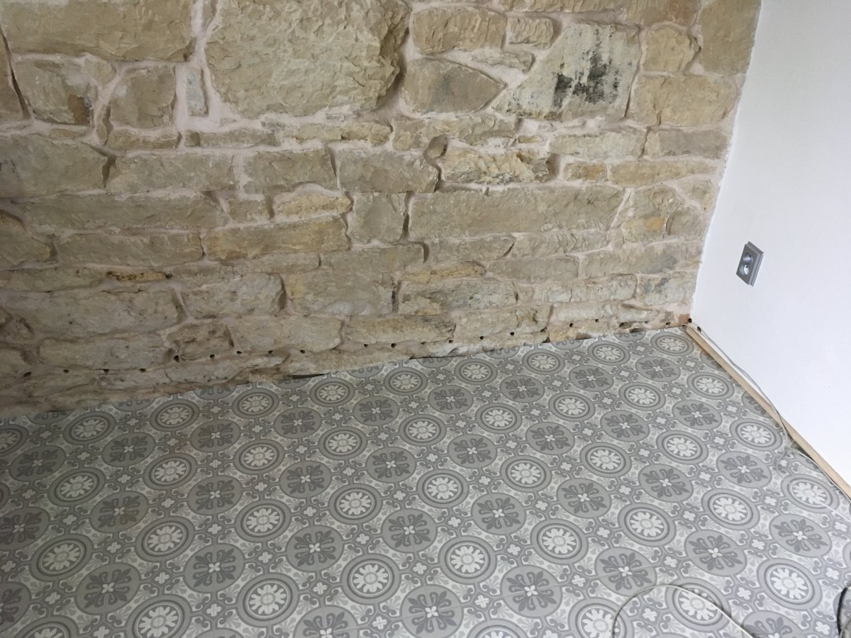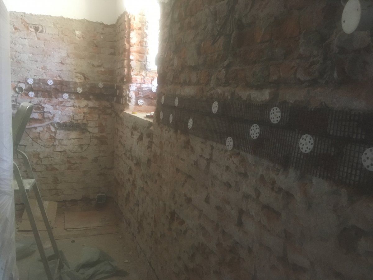 - Technologie: Instalace technologie aktivní drátové elektroosmózy pro odvlhčení různorodého zdiva rekonstruovaného rodinného domu. Drátová osmóza je schopna řešit i zdivo, které nelze podřezat, nebo kde hrozí statické problémy.