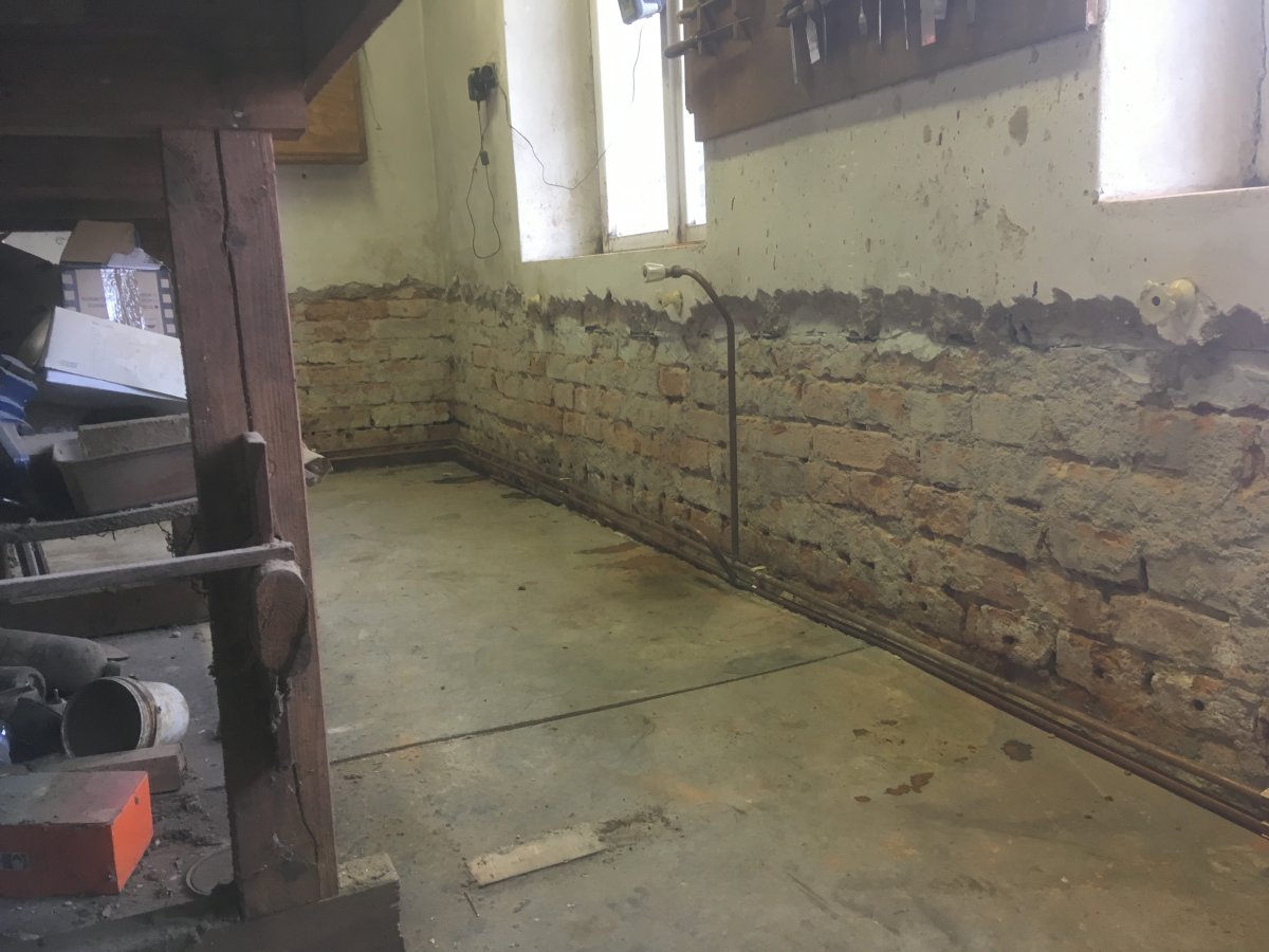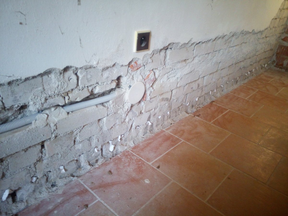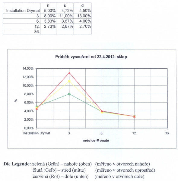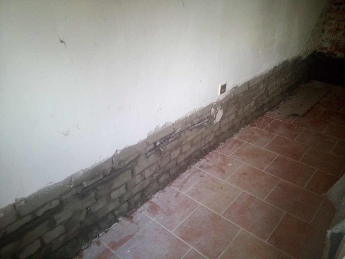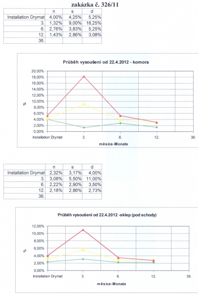 - Technologie: Dodatečná hydroizolace zdiva rodinného domu v úrovni podlah přízemí chemickou injektáží na bázi silanových krémů. Po aplikaci injektáže dochází k hydrofoboizaci zdiva a vzlínající vlhkost nemůže proniknout do zdiva nad clonou.