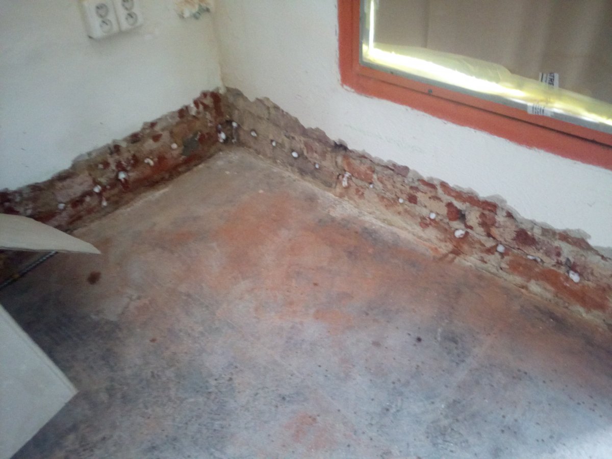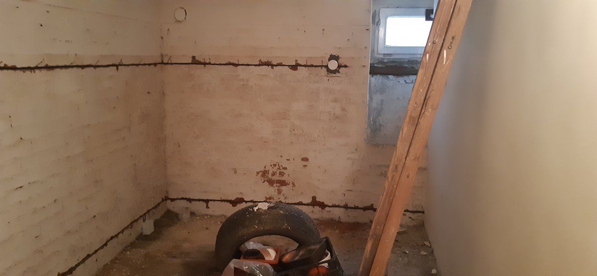 - Technologie: Aplikace nových hydroizolací pomocí technologie chemické injektáže. Injektáže provedeny v úrovni podlah přízemí rodinného domu. Nad injektážní clonou již nedochází k pronikání vlhkosti z podloží a naopak zdivo postupně vysychá.