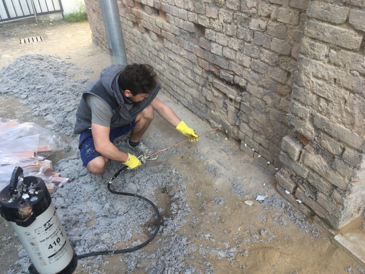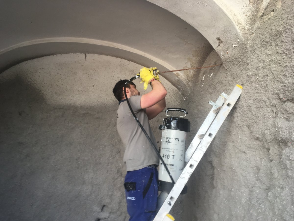 - Technologie: K vytvoření dodatečné hydroizolace spodní stavby bytového domu starého přibližně 100 let využito krémové injektáže zdiva silan-siloxanovým krémem. Aplikací do zdiva dojde k vytvoření dodatečné hydroizolace, která brání kapilárnímu vzlínání.