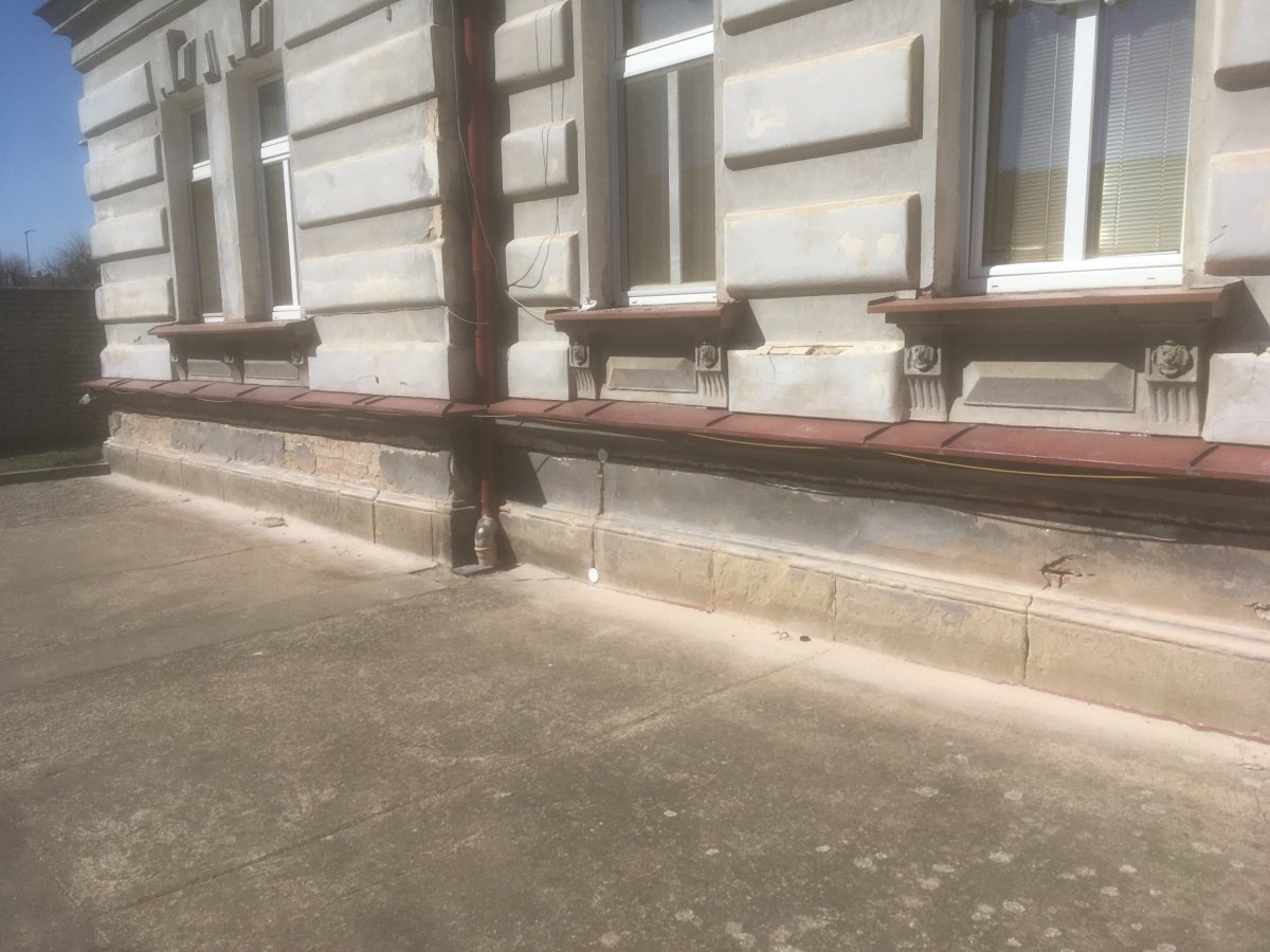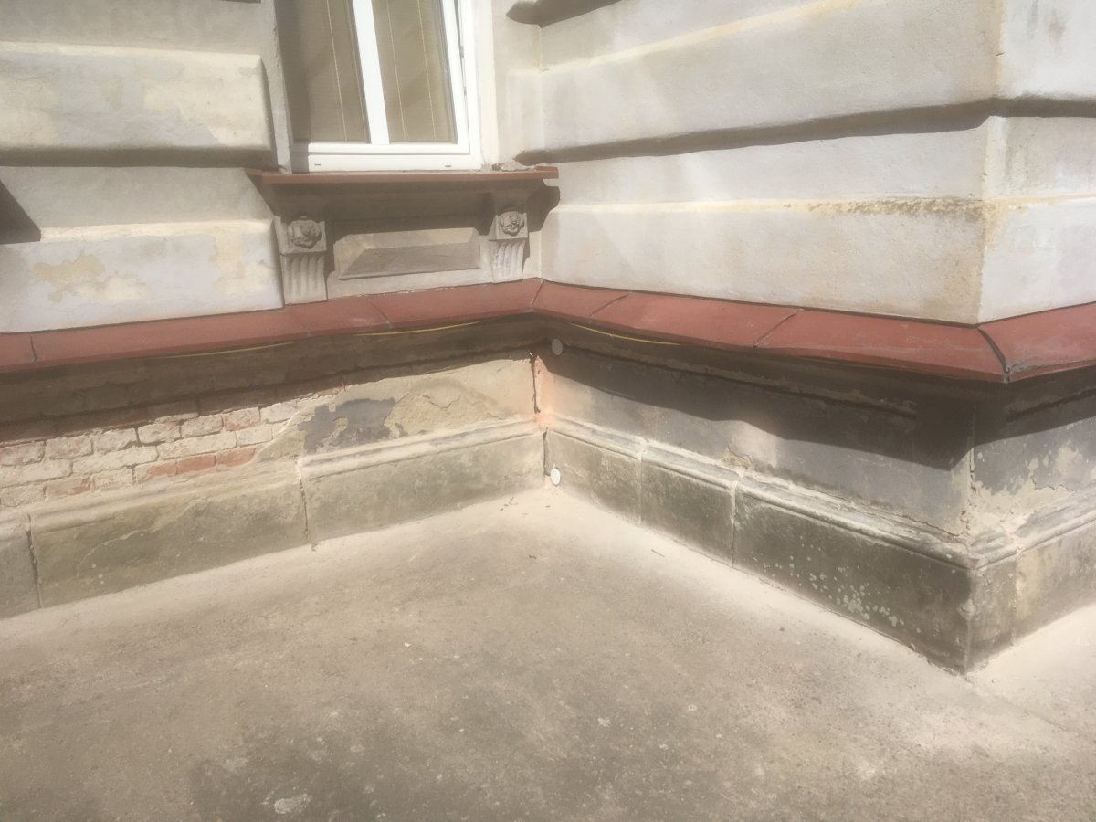 - Technologie: Provedení dodatečných hydroizolačních chemických clon krémovou injektáží zdiva. Původní vodorovné hydroizolace základů byly již dožilé a vlhkost vzlínala do přízemí domu. Problém byl vyřešen chemickou clonou.