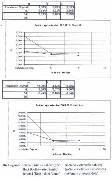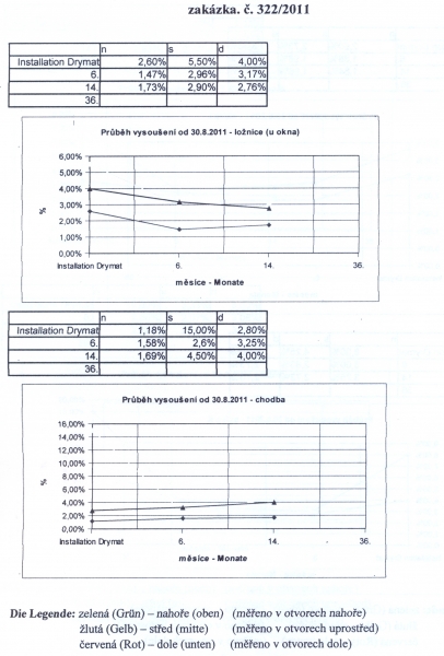 - Technologie: Provedení dodatečných hydroizolací pomocí metody chemické injektáže v přízemí rodinného domu a dále instalace základní řídící jednotky bezdrátové elektroosmózy pro snížení vlhkosti sklepa.